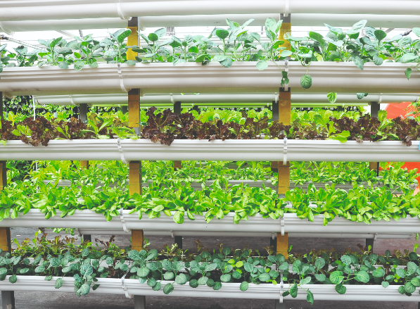 Vertikalni uzgoj (slika 13) je uzgoj biljaka u zaštićenim ili zatvorenim prostorima u okomito naslaganim slojevima. Uzgoj se obavlja u zatvorenim prostorima poput, skladišta, transportnih kontejnera i praznih uredskih prostorija, a pogodna je tehnologija proizvodnje hrane u urbanim područjima i drugim mjestima koja nisu pogodna za tradicionalnu poljoprivredu (područja gdje tlo nema odgovarajuća fizikalna i kemijska svojstva). Također, za vertikalni uzgoj su pogodne ravne krovne površine na kojima se postavljaju sustavi za uzgoj biljaka. Mini sustavi se mogu koristiti u restoranima, odnosno domovima za osiguranje svježih namirnica za pripremu obroka. Najvećom prednosti vertikalnog uzgoja smatra se mogućnost ostvarivanja visokog prinosa uzgajane kulture na relativno malom području tijekom cijele godine. U usporedbi s tradicionalnom poljoprivredom, vertikalna poljoprivreda koristi puno manje vode i zemlje (uzgojne površine), emitira manje CO2 i daje veće prinose uzgajanih kultura ukupno i po m2.