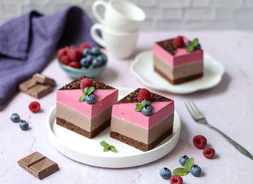 Smrznuto šumsko voće kuhati sa šećerom dok se ne raspadne. Propasirati od koštica i vratiti kuhati. Puding razmutiti u vodi i ukuhati u šumsko voće. Kuhati dok se ne zgusne, pa maknuti s vatre. Dodati želatinu prethodno pomiješanu sa 4 žlice hladne vode i otopljenu na najmanjoj vatri. Dobro promiješati i pokriti prozirnom folijom. U ohlađenu kremu umiješati tučeno vrhnje u šlag. Rasporediti po čokoladnoj kremi. Staviti u hladnjak da se dobro ohladi i stisne. Ukrasiti po želji šumskim voćem i ribanom čokoladom.