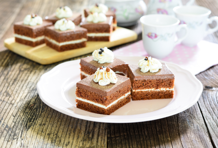 Priprema je vrlo jednostavna – biskvit se peče u svega desetak minuta, a kreme se pripremaju bez kuhanja, samo miješanjem. Rezultat je atraktivan kolač slojevitog izgleda i bogatog čokoladnog okusa, koji se topi u ustima.
