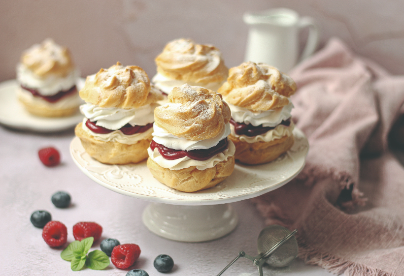 Priprema: Ohlađene košarice prerezati pa puniti s kremom, preljevom i šlagom. Ukrasiti šećerom u prahu.