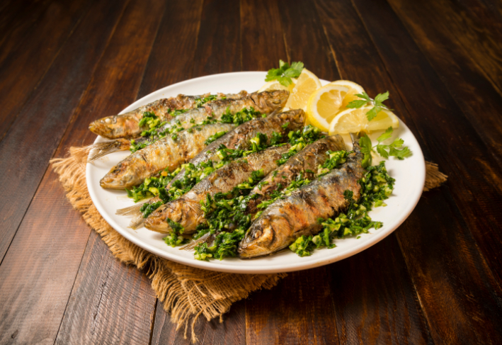 Riba se izvrsno slaže s maslinovim uljem, sokom i koricom limuna ili naranče, vinom te začinima kao što su peršin, ružmarin, lovor, origano, timijan, majčina dušica, komorač…
