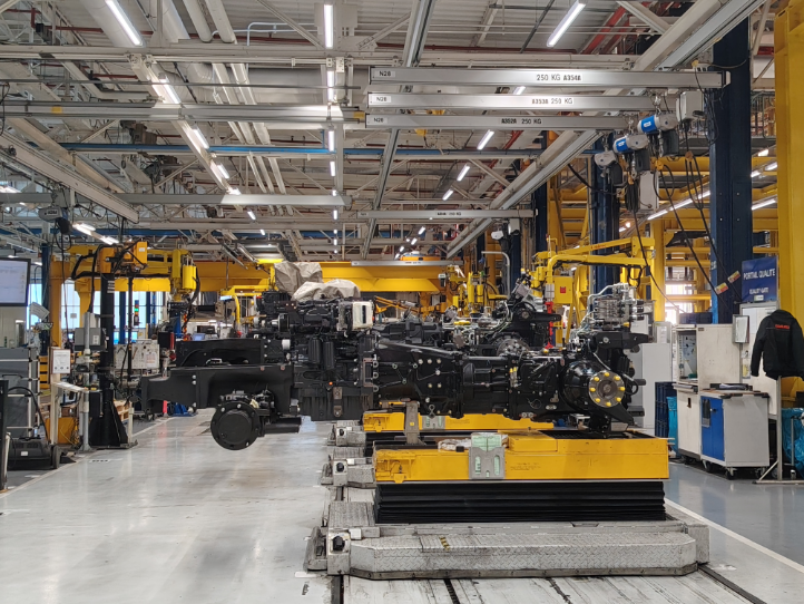Proces proizvodnje uključuje visoku razinu automatizacije. Mjenjači s osnovnom konstrukcijom dolaze u odjel za pranje gdje ih čiste roboti koij peru, odmašćuju, pripremaju površinu, nakon čega idu na sušenje, zatim se sve zagrijava na 80 °C i ulazi u lakirnicu. Roboti obojaju oko 90% površine, a završni sloj radi radnik. Za jedan traktor koristi se u prosjeku oko 6 kg boje. Traktori se kreću kroz tvornicu pomoću AGV vozila koja se prilagođavaju veličini traktora, pune se indukcijom iz poda i imaju baterije. Tehničari ih mogu upravljati i putem mobitela. Kabine se sastavljaju na posebnoj liniji. Proces je također miješovit; mala kabina, srednja, velika. Na posebnoj stanici traktor dobiva motorno ulje, ulje u mjenjaču, rashladnu tekućinu, plin za klimu i zatim se traktor prvi put pokreće.