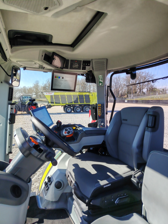 Još jedan vrhunac nove serije AXION 9 je potpuno redizajnirana kabina. S volumenom od oko tri kubična metra pruža novi osjećaj prostranosti i dovoljno mjesta za vrhunska vozačeva sjedala, suvozačko sjedalo i pretince za pohranu, kao i neograničen prostor za noge čak i za visoke vozače. Pristup kabini s četiri stupa dodatno je optimiziran i sada je najširi u ovoj klasi traktora. Kabina pruža ugodnu atmosferu zahvaljujući pažljivo odabranim materijalima i visokokvalitetnim površinama. Premium vozačka sjedala – opcionalno dostupna s ventilacijom, grijanjem i funkcijom masaže – čine i duge radne dane znatno ugodnijima. Zahvaljujući velikom kutu zakretanja do 40 stupnjeva udesno (i 10 stupnjeva ulijevo radi lakšeg ulaska i izlaska), moguće je pratiti priključke bez naprezanja, dok se noge mogu potpuno ispružiti i udobno osloniti na nove oslonce za noge na desnom A-stupu. Osim toga, kvaliteta rada i napredak procesa mogu se pratiti putem triju integriranih kamera.