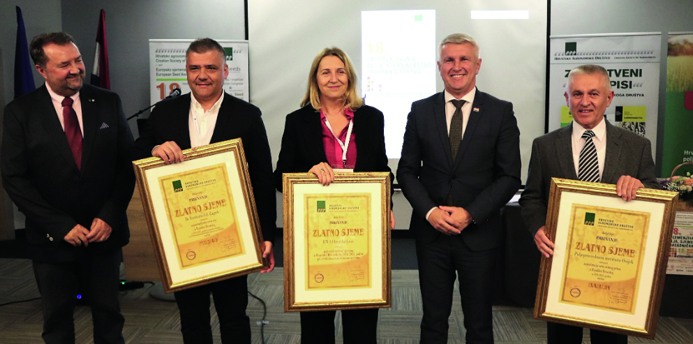 Hrvatsko agronomsko društvo dodijelilo: Bc Institutu d.d. Zagreb za najrašireniju sortu soje u Republici Hrvatskoj – sorta Pedro, Poljoprivrednom institutu Osijek za najrašireniju sortu ozimog ječma u Republici Hrvatskoj – sorta Barun, te RWA Hrvatska d.o.o. u kategoriji najveći dorađivač sjemena u Republici Hrvatskoj u 2024./2025. godini po certificiranim količinama sjemena.