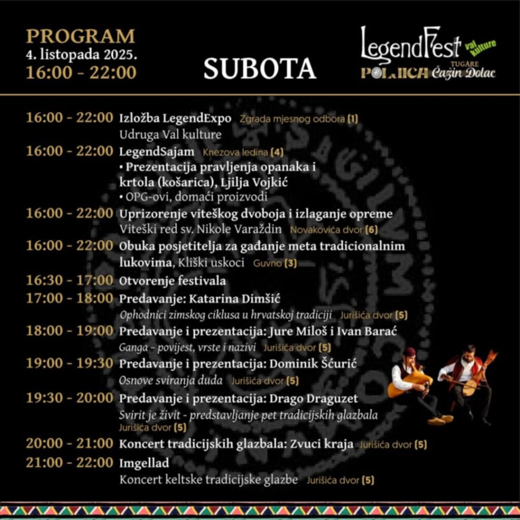 Kako bi se ova bogata povijesna i kulturna baština Poljica oživjela i približila građanima, udruga Val kulture i Mjesni odbor Tugare drugu godinu zaredom organiziraju jedinstveni festival Legendfest Poljica 2025.
