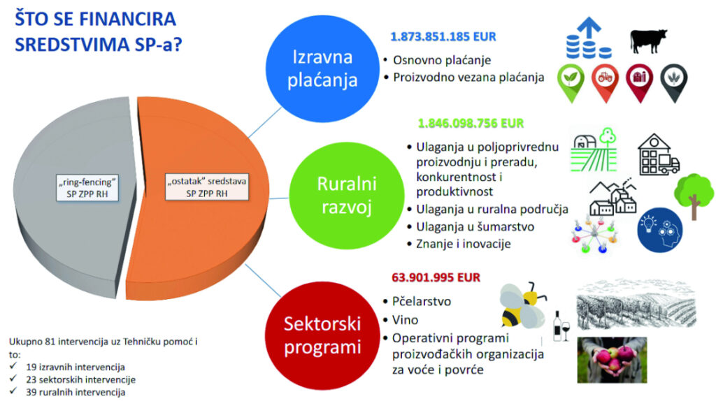 Strateški plan Republike Hrvatske u okviru ZPP-a za razdoblje 2023. – 2027. (SP ZPP RH)  programski je i strateški dokument i temelj za korištenje sredstava europskih poljoprivrednih fondova (EFJP i EPFRR) i primjenu alata i instrumenata ZPP-a (izravna plaćanja, ruralni razvoj, sektorske intervencije). Potrebe i prioriteti poljoprivrede i ruralnih područja u Hrvatskoj utvrđeni su na temelju provedenih opsežnih SWOT analiza (snage, slabosti, prilike i prijetnje) za devet specifičnih ciljeva ZPP i međusektorski (horizontalni) cilj (modernizirati sektor poticanjem i razmjenom znanja, inovacija i digitalizacije u poljoprivredi i ruralnim područjima te poticanje njihovog prihvaćanja), koji su propisani temeljnim uredbama nove, reformirane ZPP
