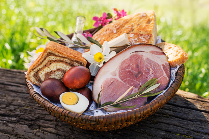Središnji dio proslave svakako je blagoslov jela. Košara u kojoj se nalaze šunka, jaja, mladi luk i hren predstavlja plodove ljudskog truda i Božje milosti. Hren nas podsjeća na gorčinu života i težinu križa, dok nas jaja podsjećaju na novi život koji puca iz ljuske. Kada te namirnice podijelimo s bližnjima, mi ne hranimo samo tijelo, nego i duh zajedništva.