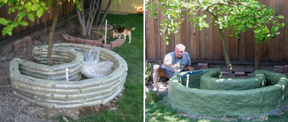Izrada: Na samo dno gredice, prije prvog reda vreća, stavite sloj šljunka kako bi spriječili zadržavanje vode i truljenje korijena. Svaki sloj vreća treba dobro zbiti/nabiti dok su još vlažne kako bi postale čvrste poput kamena. Koristite ekološki prihvatljive boje na bazi vode koje neće ispuštati kemikalije u zemlju gdje uzgajate hranu. Sredinu gredice (unutar “prstena” od vreća) ispunite bogatim kompostom i kvalitetnom zemljom, dok vreće služe isključivo kao strukturni zid.