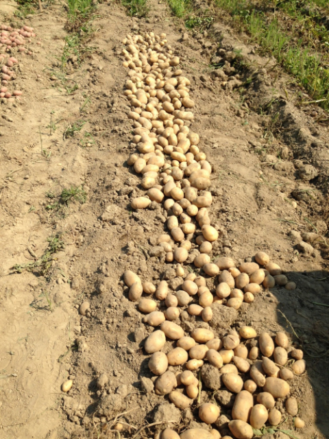 Polaganje gomolja: transportni mehanizam s čašicama (žlicama) osigurava ujednačen razmak unutar reda.