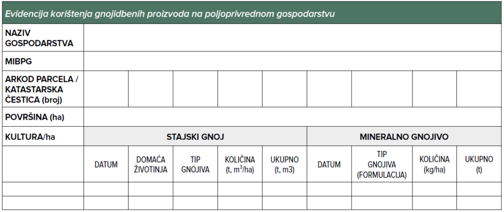 Evidencija korištenja gnojidbenih proizvoda na poljoprivrednim gospodarstvima vodi se sukladno Dodatku III. navedenog Programa.