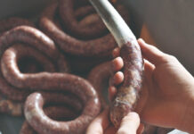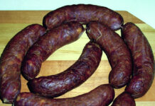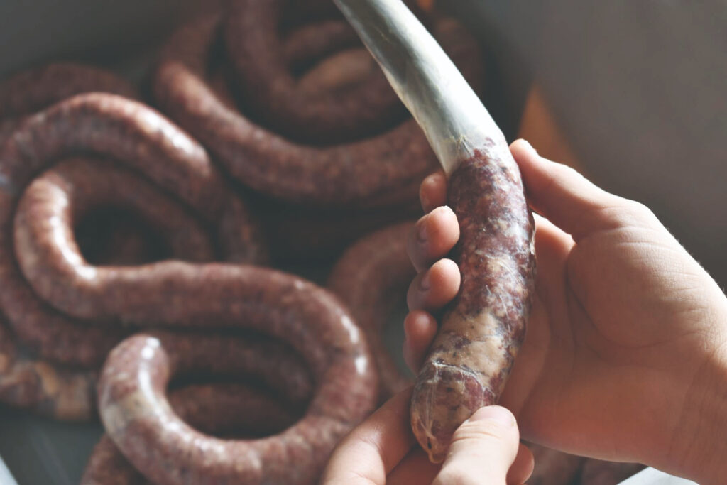 Svi sastojci marinade, osim vina i soli, kuhaju se 10-15 minuta, a potom se ohlade. Nakon toga se dodaju vino i sol. Meso se nareže na komade i u potpunosti prelije marinadom. Ako marinade nije dovoljno, dodajte još tekućine kako bi meso bilo potpuno prekriveno. Mariniranje traje 24 sata u hladnjaku (2-4°C). Smjesa za kobasice puni se u crijeva promjera 32-36 mm, a kobasice se formiraju u dužini od 15-20 cm. Nakon punjenja, kobasice se ostave 24 sata na hladnom (4°C) prije nego što se mogu kuhati ili zamrznuti za kasniju upotrebu.