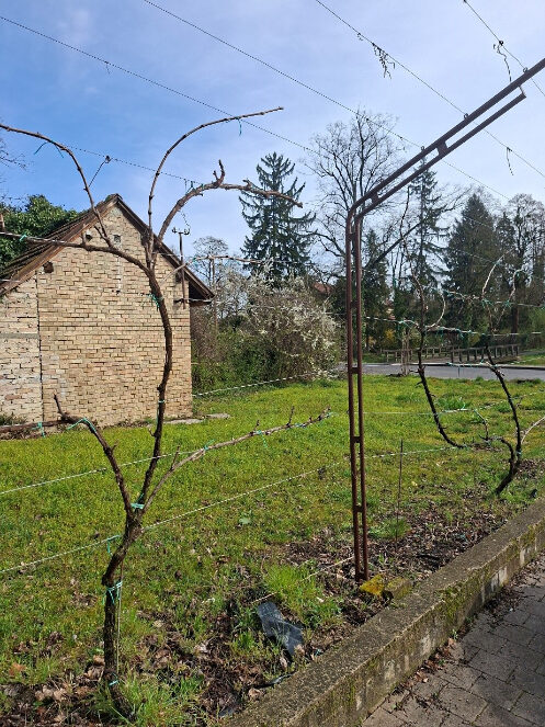 Važno je spomenuti da se prilikom formiranja visine uzgoja, ali i kasnije, pojedine rozgve mogu ostaviti i na bočnoj, vertikalnoj plohi pergole kako bi se dobio („zeleni zid“). Rozgve koje se ostavljaju mogu biti na bilo kojoj visini od tla, ali je važno da ih nema previše raspoređenih jedne iznad druge. Na dva metra visine dovoljno je 2-3 horizontalno raspoređene rozgve, razmaknute 40-80 cm jedna iznad druge. Dužina može biti provizorna, toliko da se ne križaju s rozgvama susjednog trsa. Treba nastojati da se rozgve poliježu vodoravno na žicu. Ukoliko bi bile postavljene ukoso, utoliko vršni pupovi (kasnije i ogranci) bili bi rodniji i bujniji, a oni niži slabije. Dugoročno bi niži ogranci odumrli, ne bi bilo zelene mase i dobili bi „rupe u zidu“. Godinu nakon formiranja, na tom sada dvogodišnjem drvu po dužini svakih 30-50 cm ostavljamo po jedan reznik sa 2-3 pupa.