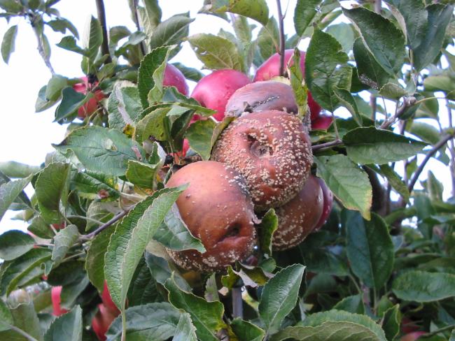 Takvih plodova može biti poprilično na stablima u vrtovima ili malim voćnjacima gdje se ne provode mjere zaštite. U profesionalnim, intenzivnim voćnjacima bolest je rijetka. Ukoliko se uberu plodovi koji su zaraženi, smeđa trulež nastavlja se razvijati u skladištu. U tami plodovi ne postaju smeđi nego crni i „gumenasti“. Druga bolest koja je česta nakon berbe je plava plijesan. Naziv ju dobro opisuje. Zaraženi plodovi trunu, a na njima se razvijaju plavičaste nakupine gljive (plijesni). Plodovi koji su zaraženi plavom plijesni ne bi se trebali upotrebljavati za sokove ili preradu. Gljiva uzročnik bolesti stvara toksičnu tvar zvanu patulin, koja može imati neželjene posljedice po ljudsko zdravlje.
