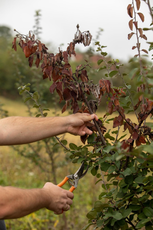 Zbog toga je važno održavati preporučene razmake sadnje i redovito provoditi rezidbu voćaka kako bi krošnja ostala prozračna. Jedna od osnovnih preventivnih mjera u ekološkoj zaštiti voćaka je uklanjanje zaraženih dijelova biljke rezidbom. Na granama i izdancima često prezimljuju štetnici i uzročnici bolesti pa njihovo uklanjanje značajno smanjuje mogućnost širenja zaraze. Nakon rezidbe zaraženih grana preporučuje se spaliti biljni materijal kako bi se spriječilo daljnje širenje patogena i štetnika. Ako rezidbom nastanu veće rane potrebno ih je premazati voćarskim voskom ili drugim zaštitnim sredstvom kako bi se spriječio prodor bolesti. Osim rezidbe važno je redovito sakupljati otpale plodove i lišće koji su zaraženi jer oni mogu biti izvor infekcije u sljedećoj vegetacijskoj sezoni. Također se preporučuje struganje stare kore s debla voćaka jer se ispod nje često skrivaju štetnici poput štitastih ušiju i drugih kukaca koji prezimljuju na stablu.