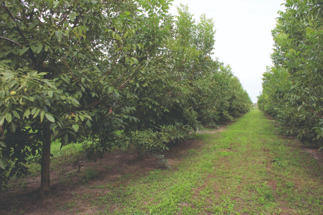 Sustav uzgoja oraha u obliku žive ograde u punoj rodnosti u Italiji pokraj Roviga