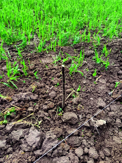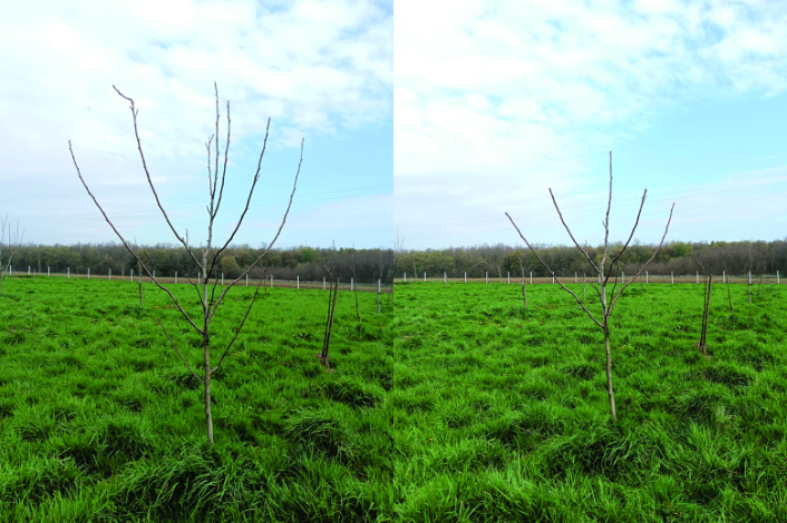 Potrebno je za napomenuti da je za uspješno izvođenje navedene tehnike potrebno osigurati navodnjavanje i zadovoljavajuću gnojidbu oraha, iako ju koriste i uzgajivači bez navodnjavanja te često onda moraju ponavljati postupak. U proljeće nakon kretanja vegetacije plijevljenjem se uklanja višak mladica, a ostavljaju se dvije najpovoljnijeg rasta (koja će držati što veću ravninu u odnosu na podlogu) (slika 4). Dodatna mladica se ostavlja kao „rezerva“ ukoliko dođe do povrede glavne mladice.