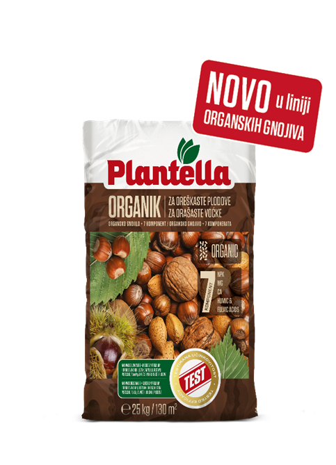 Novi Plantella Organik za orašaste voćke prilagođen je potrebama ovih kultura. Njegova organsko-mineralna formula sadrži uravnotežen odnos osnovnih hranjiva (NPK) uz dodatak kalcija i magnezija te huminskih i fulvinskih kiselina, koje imaju važnu ulogu u plodnosti tla. Kalij i magnezij doprinose boljem razvoju jezgre i većem udjelu ulja, dok kalcij i bor podržavaju oplodnju i razvoj čvršće ljuske. Istodobno, huminske kiseline u tlu vežu hranjiva i postupno ih otpuštaju, a fulvinske kiseline pomažu u prijenosu mikroelemenata u biljku. Na taj način biljka hranjiva koristi učinkovitije, a korijenski sustav se bolje razvija.
