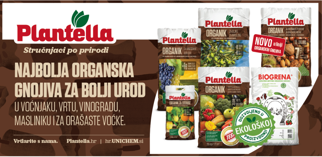 Za voćnjake birajmo Plantella Organik koji je dozvoljen u eko proizvodnji. Ovo gnojivo bogato je huminskim i fulvinskim kiselinama, dušikom, fosforom, kalijem, kalcijem i drugim važnim elementima za rast, cvatnju, oplodnju i kvalitetan plod. Sadrži sva potrebna hranjiva, i daje čak i 30% više prinosa bolje kvalitete. Aktivno djeluje i do 6 mjeseci.