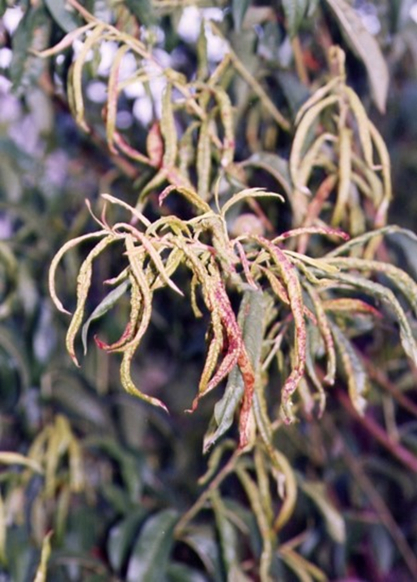 Slike 1, 2, 3, 4 i 5: Gotovo da nema biljne vrste koju ne napadaju lisne uši, pa posjednici manjih voćnjaka uz okućnice (vikendice) često traže upute kako suzbijati ove neželjene kukce. Netipične promjene na lišću breskve uzrokovane napadom lisne uši (slika 1) i “slične” promjene od uzročnika kovrčavosti (Taphrina – slika 2). Uzročnici pjegavosti (krastavosti) lišća i plodova, predstavljaju uz plijesni ili truleži, pepelnice i hrđe važniju skupinu bolesti nadzemnih organa voća.