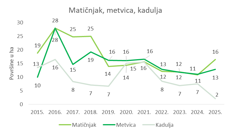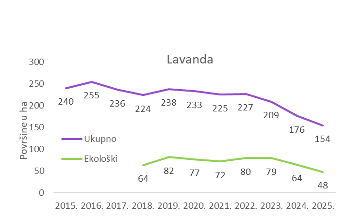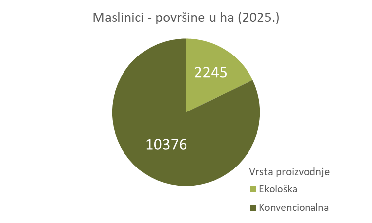 Hrvatska prema dostupnim podacima Agencije za plaćanje u poljoprivredi, ribarstvu i ruralnom razvoju imala je 2025. godine 12621 ha maslinika. Od toga je čak 2245 ha ekoloških.